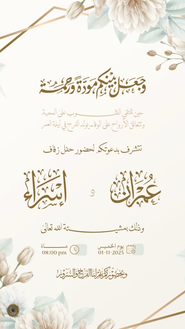 قالب تصميم احترافي - دعوات, زفاف من تطبيق أندلسي للتصميم