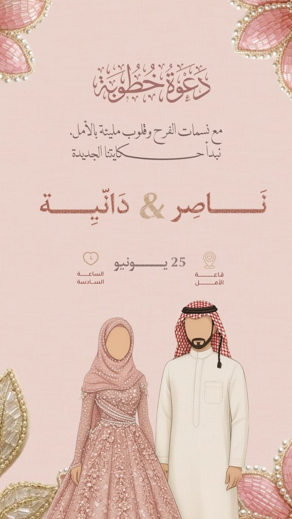 قالب تصميم احترافي - خطوبة, دعوات من تطبيق أندلسي للتصميم